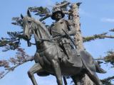 | 2013年夏、陸奥の旅の最終日に立ち寄る。伊達正宗公の銅像の前で記念撮影。 |