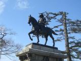 城跡の見事さはさておき、ここではどうしても伊達政宗の騎馬像に魅かれますね。各地に戦国武将の銅像などいろいろありますが、やはりこれが日本一でしょう。 |