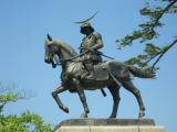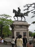| 有名な政宗公の像の前で記念撮影。今回の旅行のメインイベントです。けっこう高台にあり、仙台市内が一望できました。満足満足。 |