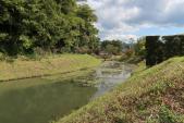 | 今治城からレンタカーで湯築城へ。土塁と堀の跡しか残っていないので、今治城と比べると見劣りしますね。 |