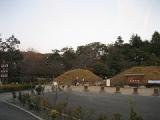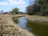 | 水掘りと土塁が在り、再現された屋敷が3棟在りました。 道後温泉で過去に使用されていた源泉を導く巨石棺が在ります。 |