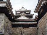 1602年にかとうよしあきが築いた。見どころは、連立式の天守で敵が侵入しにくい複雑な形式。 こなし門はめずらしく戸がない門。 高さ131メートルの山頂にありロープーウェイで登って天守まで行く。 筋金門はは小天守と大天守の通路になっていて 敵の正面を射撃するかまえになっている。 |