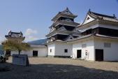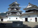 | 31城目。 かなり精密に復元された天守。木造4層建築は建築基準法に触れるが、そこを国に説得し特例で認められたものとのこと。これぞ本当の「復元天守」。地元の人たちの熱意に頭が下がる。 堀や三の丸は住宅地に造成され、ほとんど面影はないが、それが逆に想像をかき立てておもしろいものがある。 |