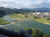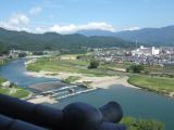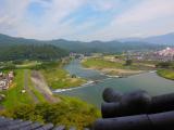 | 86城目 天守は復元とはいえ、木造での復元は素晴らしいですね。天守内側から見る伝統技術による木組みは実に迫力があります。階段も急角度のままですが、“だが、それがいい!”天守最上階の木のネズミも“いい!”(てんとう虫は、いずこ?)。 城の北の丸・水の手からは、小道が肱川の堤防に通じており、そこからは、「台所櫓」「天守」「高欄櫓」の勇姿(黒い三連星!?)を同時にみることができます。 折角なので、お殿様公園の「三の丸南隅櫓」「旧加藤家住宅主屋」にも足を伸ばします。また、そこから「並木」を抜けた大洲高校側には「三の丸大手門跡」があるのですが、そこからは道幅に収まるように「天守」遠景を望むことができます。景観を大事にした町づくりをされているなあと感じました。 最後に「苧綿櫓」を間近に見てから宇和島へ移動しました。 |