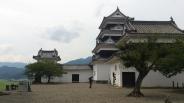 ★★☆☆☆ 64/100四国制覇の旅6城目。本日2城目。 宇和島から約1時間で12時に到着。青い空をバックに天守と脇を固める櫓の姿はとても絵になります。復元10周年の記念バッチを貰い天守に入館しました。先を見越しての木造復元は正解だったと思います。宮大工も不足気味だし木材調達コストも益々ですからね。ただ他に見所を探すのが辛いのであっという間の見学でした。つぎはいよいよ松山へ向かいます。入館料500円。 |
