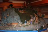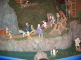 | 新築みたいできれいでした。木材がピカピカしてました。 お城を作っている様子を表しているジオラマのお人形さんたちが今にも動きそうで可愛かったです。表情が一体一体異なり、個性が出ていました。 建物の中の階段は、下の方は緩やかで踊り場もあったけど、上の方に行くと角度が急になりました。 急な階段の上に貼られている看板に注目して下さい。かわいいお殿様が、「頭上注意」の内容を教えてくれています。 あと、階段は滑りやすいのでご注意ください。転んで後頭部を打ちそうになりました。 町の時間がゆっくり流れているようでちょっと和んでしまいました。 |
