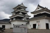 | 同じ年の1月に続く再訪です。大洲駅からループバスで城の下まで行き、坂道を登って登城しました。見事な木造の再建城で、大洲の人たちのこの城への思いが感じられます。前回も今回も人影が少なく、もったいないと思いました。職員の女性が大変親切で、ループバスの時刻を調べていただいたりしました。 |