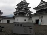 34城目。愛媛県城巡りの旅3城目は大洲城です。平日と言う事もあるのか伊予大洲駅から大洲城までの徒歩の道のりでは、殆ど人と会う事がなく、なんとも寂しい感じがしました。廣瀬川付近に近づくと、土手や橋から眺める天守はとても立派なものでした。城内はとても綺麗に整備されており、また石垣も立派でした。 |