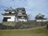 | 同じ年の1月に続く再訪です。大洲駅からループバスで城の下まで行き、坂道を登って登城しました。見事な木造の再建城で、大洲の人たちのこの城への思いが感じられます。前回も今回も人影が少なく、もったいないと思いました。職員の女性が大変親切で、ループバスの時刻を調べていただいたりしました。 |