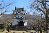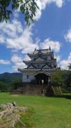 | 天気にも恵まれた。闘牛の開催日だったためか人も疎らでゆっくり見る。山肌に樹木や草花と共存する石垣が美しい。複雑な折れも見事である。石段を登りきり天守が姿を表した時は感動した。期待以上の素晴らしさであった。 |