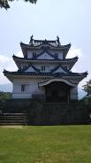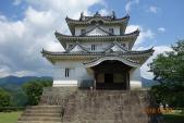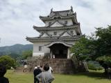 | 6城目。(7/200) 登城するのは2度目。東側の桑折長屋門から登る。なだらかなルートを選択。途中で道を蛇が横切る。本格的に蛇や虫に注意が必要な季節になった。 途中、石垣に見いりながら登り、疲れた頃に天守に到着。青空の中に映える白い天守は小ぶりながらもかっこいい。 天守内は、やはり広くはないが現存天守の重厚さがあって良い。すごく急な階段も良い。昔は海城だったのか、と思いながら城下を眺める。 下りは石段のルートで下った。登る時に、門の辺りに杖が準備されていたので、使った方が良いと思う。 お昼は宇和島鯛めしを食べた。美味しい!ただ、日曜がお休みのお店もあるので注意。 |