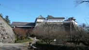 | 天守と大手門を一緒に写真に収めることができる唯一の城ということで、大手門からテンション高く登城した。天気もよく、天守から覗いた書院造の屋根は見事だった。 |