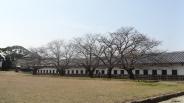 まだ桜は咲いていませんでしたが、城址内で桜まつりが始まっており、大変な人出でした。駐車場も最後の1台で辛うじて入庫、花見客をかき分けて、遺構群を見て回りました。最初に「むかし探訪館」でスタンプを押し、ボランティアの方から丁寧な説明を聞きました。館内のパノラマ模型はとても精巧でした。閉館前の鴻臚館で遺跡の見事な発掘現状展示を見学した後、現存の櫓を中心に回りました。多門櫓、祈念櫓など、石垣が高いので、下まで回って眺めると迫力がありました。さすが黒田氏の本城。 |