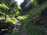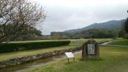 | まずは県民の森センターでスタンプを押しました。太宰府駅から向かうと山道をくねくねと登って降りたところにセンターがあります。センターの方に百間石垣への行き方を教えていただき、向かいました。石垣の上まで登る勇気がなく、下から写真をパチリ。 |