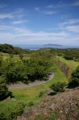 | 本丸上に立って遠く朝鮮の方向を見て当時に想いを馳せました。案内図には有名な戦国武将の名がずらりとあり、その屋敷跡あたりを眺めるとその雄大さに圧倒されました。 |