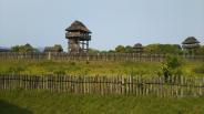 | レンタカーにて吉野ケ里歴史公園まで。弥生時代の大集落。頑丈な柵に囲まれた環濠内にある竪穴式住居に身を置くと、安らかに眠れる気がいたしました。 |