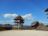 鳥栖から長崎本線で吉野ケ里公園駅まで。観光客が多いのかきれいで整備された駅です。駅から徒歩で10分ほど案内板に沿ってゆくと広大で金のかかっていそうな吉野ケ里歴史公園の入り口だ。公園内は弥生時代の大規模集落が復元した施設であるが、発掘した遺構からは人骨が多数出土しておりすさまじい戦いの跡が残っている。まさに古代城跡にふさわしい施設だ。 |