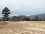 | 吉野ヶ里公園駅から、駅前のコミュニティーホールで自転車を借りて向かいました。 5分程漕いだらもう到着です。歴史公園というかもう弥生時代のテーマパークといった雰囲気でした。復元された環濠や逆茂木を見ると、やはりここが城のルーツだなと思います。 |