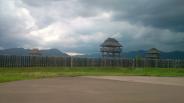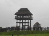 | 吉野ヶ里公園駅から吉野ヶ里遺跡まで歩く。入り口でスタンプをゲットし、お金を払って中に入る。とても広くて園内バスで移動。途中で雨が激しく降り始め、おまけに雷まで。園内を移動するのも苦労し、展望の物見櫓にはしばらく上がれなかった。 |