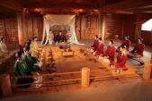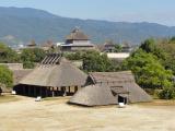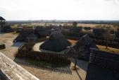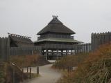 | 「寒いし、小雨降ってるし、古代史は興味ないし・・・」と思っていたが、園内を歩き始め、逆茂木と濠に囲まれた南郭内に入り、見渡す限りの藁屋根の集落と見張り台を見ていると、古代にいる気持ちになったきた。建物も展示もよくできている。もっと時間が欲しいなと思った。 |