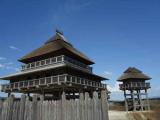 | 堀に復元された櫓など、古代の城を想像させてくれる。 |