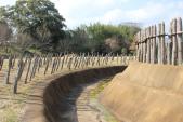 実は中規模な環濠集落を想像していただけに、あまり期待していませんでした。よく復元されていて期待以上のものが楽しめました。古代の城塞都市ですね。しかし土塁、柵の内側に堀があるのは、どういう発想でしょうか。 |