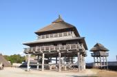 | 予想外の広さに感激しました。まず目に入る高い見張り台です。上に登って見れば素晴らしいです。まだ赤いそばの花が咲いていました。疲れたので園内の無料バスに乗っで入り口までかえって来ました。 |