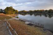 | JR佐賀駅のすぐ隣の佐賀駅バスセンター3番乗場から佐賀城行きのバスに乗り、15分後に到着しました。全国交通系ICカード利用可能で160円です。 鍋島直正公像、現存の鯱の門の弾痕なども見ながら本丸御殿へ向かいます。 現在、佐賀城歴史館になっている本丸御殿跡は外観修理中でした。玄関で靴を脱いで上がり、スタッフの方にスタンプ置き場を聞くと、その場所まで丁寧に案内をしていただきました。入館料は無料です。 歴史館の中は往時の本丸御殿の広い畳廊下や書院などが再現されていました。入場無料なのが申し訳なく感じてしまいます。 本丸しか残っていない佐賀城は30分もあればぐるっと一周できます。南西側櫓門跡に立って南に見える水掘の幅の広いこと。80mくらいはありそうです。 冬の日の夕暮れは早いけれど、何とか色々と写真が撮れました。 |