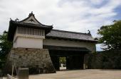 | 大手門近くの駐車場に車を止め、まずは目の前の天守台に登りました。大きな天守台からは相当の天守が建っていたと想像できます。 立派な大手門を潜ると左手にアームストロング砲(大砲)が展示されてあるのでまず驚きます。本丸御殿が木造復元されており暑いなかの城巡りのなかで涼を取るいい場所でした。 城内には一般民家が多数建てられておるので少々雰囲気壊れますが、迫力のある幅広い濠が城の雰囲気を出していました。 |