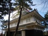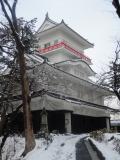 | 雪の久保田城 櫓は3月末まで休館 スタンプは資料館にて押印 |