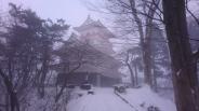 85城目。佐竹史料館に閉館間近のタイミングで入館。堀の水は一面真っ白に凍りついていた。その後、雪深い千秋公園を散策。大雪の影響で視界が遮られ、極寒の中なんとか御隅櫓までたどり着く。長坂を登っていくと見える表門は本丸の玄関口にあたり、とても格式が高い。またその門付近にある、出入者の監視を担う御物頭御番所は秋田藩の時代から唯一残っている。関ヶ原の戦い後、常陸から出羽秋田に転封された佐竹義宣が1604年に築いた。佐竹氏自身は石垣普請に精通せず、かわりに土塁普請を得意としたため、石垣がほとんど使用されなかった。城全体としては質素な造りで、天守や三重の櫓はないが、各曲輪の周囲や櫓台の土塁はよく残っている。 |