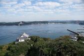 | 田平のレストランから平戸港を臨むと高台に平戸城がみえました。寺院と教会の見える風景など平戸は見て回りたいところが多く大忙しでしたが、ともかく登城!。運良く城内にある亀岡神社は「大々神楽」の当日で、地元の放送局や大勢の方で賑わっていました。松浦資料博物館と平戸商館はもっと時間をかけて見学したい場所でした。 |