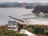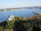 | 88城目 西九州の名城巡り3日間の旅 2日目 佐世保から、平戸島の玄関口・真紅の平戸大橋を渡って 登城、平戸大橋から見えるお城の遠望に期待が高まる。 現地ガイドの方から、古代は遣唐使船の寄港地として、 江戸時代は日本で最初の海外貿易港として栄えた歴史と ロマンの島・平戸の説明がありました。 初代藩主・松浦鎮信は、平戸瀬戸に突き出た亀岡の地に 「日の岳城」を築いたが、慶長18年(1613)、家康が 秀吉と親交が深かった松浦家に疑いのまなざしを向けた ため自ら城を焼き捨てたという。 その後、同じ亀岡の地に享保3年(1718)に再建された 平戸城も、現存は北虎口門と狸櫓のみですが、その北 虎口門をくぐって登城しました。 現在、三重の天守と共に、乾櫓、見奏櫓、地蔵坂櫓、懐柔 櫓が復元されていますが、天守閣からの見奏櫓と平戸瀬戸や 懐柔櫓と平戸大橋の組合せ、平戸オランダ商館(復元)の眺望 は素晴らしく、平戸城が玄海灘を自然の堀とした海の要害 であった事がわかります。 |