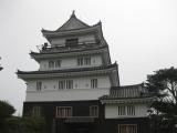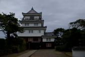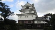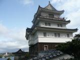 | 車で、名護屋城より伊万里市を経由して移動。2時間半くらいだったかな。 思ったよりかかりましたが、海が見えてましたので快適に走れました。 車は、北側の観光物産センターの無料駐車場に停めました。 丁度昼時でしたが、食事より先に登城開始。スタンプは天守の中にありましたので、入場料を受付で払って進まないといけません。 お城は全体的に不思議な感じで、さすが長崎、他国の影響を受けている気がします。 この日は風が強く、天守の最上階で外へ出ると飛ばされそうでした。 |