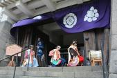 | [11城目] 4度目の登城(忘年会、普賢岳噴火後、家族旅行、城廻) 前回は駐車場上の広場で少年剣道大会が催されていたが、 今回は女性武者がお出迎え? |