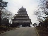 | 天守閣のすぐ前まで車で行けるので便利と言えば便利なのですが(レンタカー利用でした)、遺構の保存という観点からすると疑問です。復元された天守閣はよくあるコンクリートの資料館です。 |