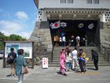 | 63城目。 天守は再建ですが、見事な石垣でした。 ただ城に変な幟を立てるのは、やめていただきたい。 |
