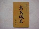 頂きました!長男が誕生した記念にと10年前に寄付した一口城主!「熊本城主手形」なるものが郵送で届きました。カードサイズになっているのですが、かっこいい!1年間熊本市が管理する13の有料施設に無料で入園できるそうです。その後寄付した妹・弟の分と3通!とても記念になります。熊本市長さんありがとうございます。期限が切れても大切にします。熊本城は大好きなお城です。一口城主の名板の中に子供の名前を探すのも楽しみの一つです。帰りに「山ちゃんの手羽先」を食べて200Kmの帰路に着きます。 |