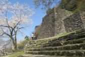 | 桜もほぼ満開で場内では敷物を敷いてお花見の人たちが多かったです。立派な石垣の山城でした。 |