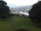 人吉城跡には「人吉インター入口」の高速バス停から徒歩20分位で到着しました。石垣を見てから歴史館でスタンプを押し、展示を見学しました。その後、再び城跡を散策しましたが、雨で石段が滑り易くなっていて、特に下りは慎重になりました。「人吉インター入口」から宮崎に向かいましたが、バス停に着いた頃から土砂降りになり、バスも遅れて来ました。宮崎泊のため遅れても着けば良いと思ってましたが、土砂降りで視界が悪い中、速度を落とすこと無く走り宮崎駅到着は定刻で感心しました。宮崎駅で先に下車したサラリーマンが感謝してたので、列車の乗継ぎに間に合わせたのかと思います。 |