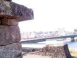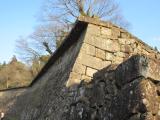 | ◆人吉城(30城目) ・2015年2月22日◇所要時間:1時間25分 ◆中央の写真(2015年2月22日撮影): スタンプがデザインされているのは角櫓です。撮影は城の西北に位置する大橋からです。 ここは球磨川と胸川が交差し、両河川を巧みに利用して縄張りとした人吉城の特徴が表れている場所です。写真は左から角櫓・長塀・多聞櫓と続き、天然の堀と連携して大手門(右奥)の脇を固めている様子が伝わるかと思います。 ◆右の写真(2015年2月22日撮影): オススメの1枚は武者返しの石垣です。撮影は藩主の居館である御館の北側で、上端に突出部(武者返し)を付けるはねだし工法は西洋の築城技術です。他に品川台場、五稜郭、龍岡城(長野県)では確認されていますが、江戸初期〜中期に築城された城郭で確認されているのは人吉城のみです。もっとも、石垣の上は櫓で防御されていたが、櫓が焼失したため、石垣を高くし武者返しで防御を固めた、言わば苦肉の策であったようです。 |