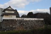 | JR大分駅から徒歩で向かいました。街中を歩くので信号も多く15分程かかりました。城跡は本丸と二の丸とその周りの水掘りを残すのみで、こじんまりとしています。二の丸は西と東に分かれていて、西の丸のほうでは重機が入って工事がなされていました。これからここに何か施設が建つのでしょうか。 大手門から旧二の丸に入り、天守台跡に登り、その後廊下橋を渡って松栄神社から退出しました。城の北側の旧山里丸にあたる松栄神社から堀を隔てて、現存する人質櫓越しに天守台跡を見る景色は、なかなか趣があります。 100名城スタンプは大手門の門下わきに無造作に置かれていました。 小規模ながらも現存と復元相混じった櫓が点在していて、なかなか見ごたえのある城跡なので、もう少し観光客が訪れてもいいような気がしました。 |