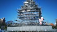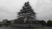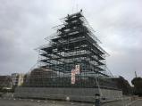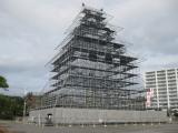 | 県庁そばにあり、夜はライトアップの為の原寸大足場が出来上がっていた。 |