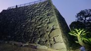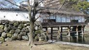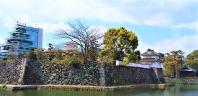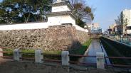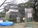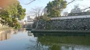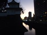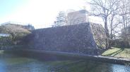 74城目。2月にしては日差しが強い。堀の内側はほとんど広場でほとんど何も残っていない。ただ、堀の外側から石垣を眺めると、松江城に似たような風情があった。夜間は足場で組んだ天守閣をかたどったイルミネーションが点灯されていたが、不思議な感じがした・ |