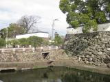 | 角牟礼城から車で約1時間、大分府内城に到着。大手門にてスタンプをゲット。大手門周辺は工事中。城内も市役所の駐車場になってしまっており、もう少し観光資源としての活用や市民公園としてもっと整備しても良いのではと思ってしまった。隣接する公園の桜は小規模でしたがきれいでした。次は臼杵城へ向かう。 |