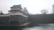 | 37城目。 朝早くに登城。お堀の石垣の雰囲気は良かったです。中の駐車場に鉄パイプで府内城を復元されていましたが、なんだか危なっかしい感じでした。ちなみに3/30までだそうです。 |
