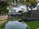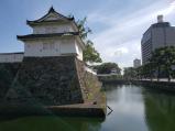 第96城目街のど真ん中に残された城跡だが、内堀と石垣や櫓がしっかり残っていて、お金次第で再建は十分可能なのでは。パイプで組まれた仮天守(?)は、何とも意味不明。海に近い城は平地にあるため、作りが似ている。 |