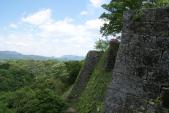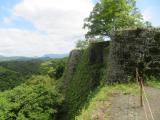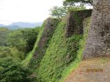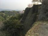 | 大分府内城を見学した後,本日のメインのお城である岡城に行きました。山城なのは知っていましたが,想像以上に(レンタカーで行きましたが)大変でした。どんどん車で山道を上り,途中本当にそうなの?と思いながら生きました。しかし城跡はしっかりと整備され,よくもまあこんな山の上にこの素晴らしい石垣を築いたものだと思います。本当に壮大な山城です。難攻不落だと思います。城跡から下の街道を見ていると.ふと「荒城の月」のメロディーが聞こえてきます。自動車が通ると,そのメロディーになるように道路が作られているようです。 このお城は(交通の便は悪いですが)絶対に行くべき城です。☆最高ランクです。 ちなみに2枚目の写真は二の丸から本丸を写した写真です。城域が広いことがわかっていただけますか? |