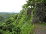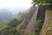 | 石垣好きにはとても見応えのある城です。 本丸のほうから見た武家屋敷跡付近の石垣、逆に武家屋敷跡から見た本丸の石垣が良いです。 七曲から駐車場に戻る道は滑りやすいので行かないほうが良いと窓口の方に言われましたが、七曲までは見たかったので行ったところ、岩をくりぬいたような道で、ちょっと感動しました。石段・石垣好きの方、地形を利用した城の好きな方は、はまるかもしれません。 ちなみに、雨が降っていたので、ちょっと滑りやすかったのは事実ですが、特に危険を感じるような道ではありませんでした。 |