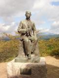 | 熊本城から阿蘇山を見ての登城です。 小雨になっていたのに目的地について車を降りると雨足が強くなります。 足元が悪い中、天守閣をめざしました。 滝廉太郎の銅像があるのを見て、荒城の月の舞台になっていたことを思い出しました。 濡れた体を温めるため、本日の宿の黒川温泉に向かいました |